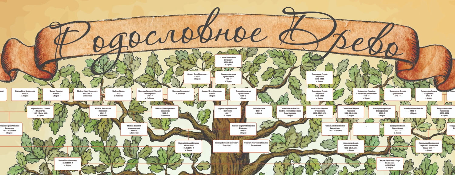 - дизайнерське генеалогічне древо, готове для друку в будь-якої поліграфії.